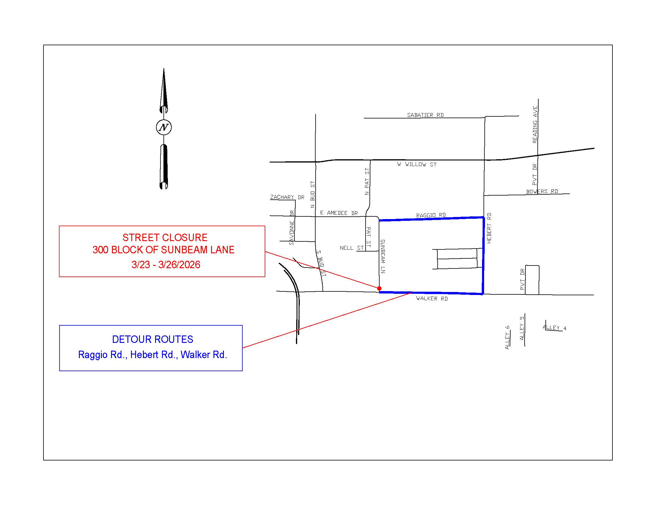 LANE CLOSURE: 300 BLOCK OF SUNBEAM LANE