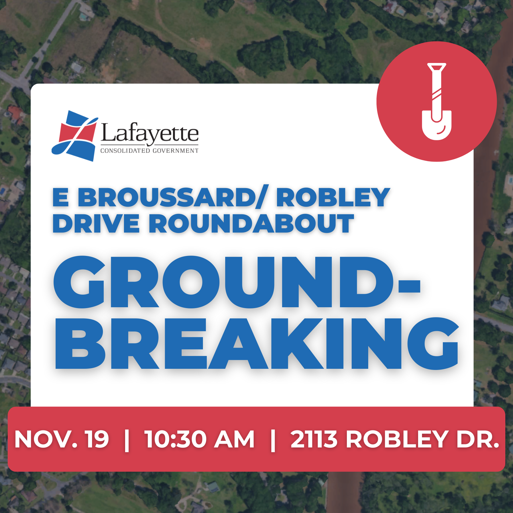 Join us for the groundbreaking ceremony for the E. Broussard/Robley Drive Roundabout Project which will mark the start of a $3.5 million infrastructure improvement to enhance traffic flow and safety at the intersection.