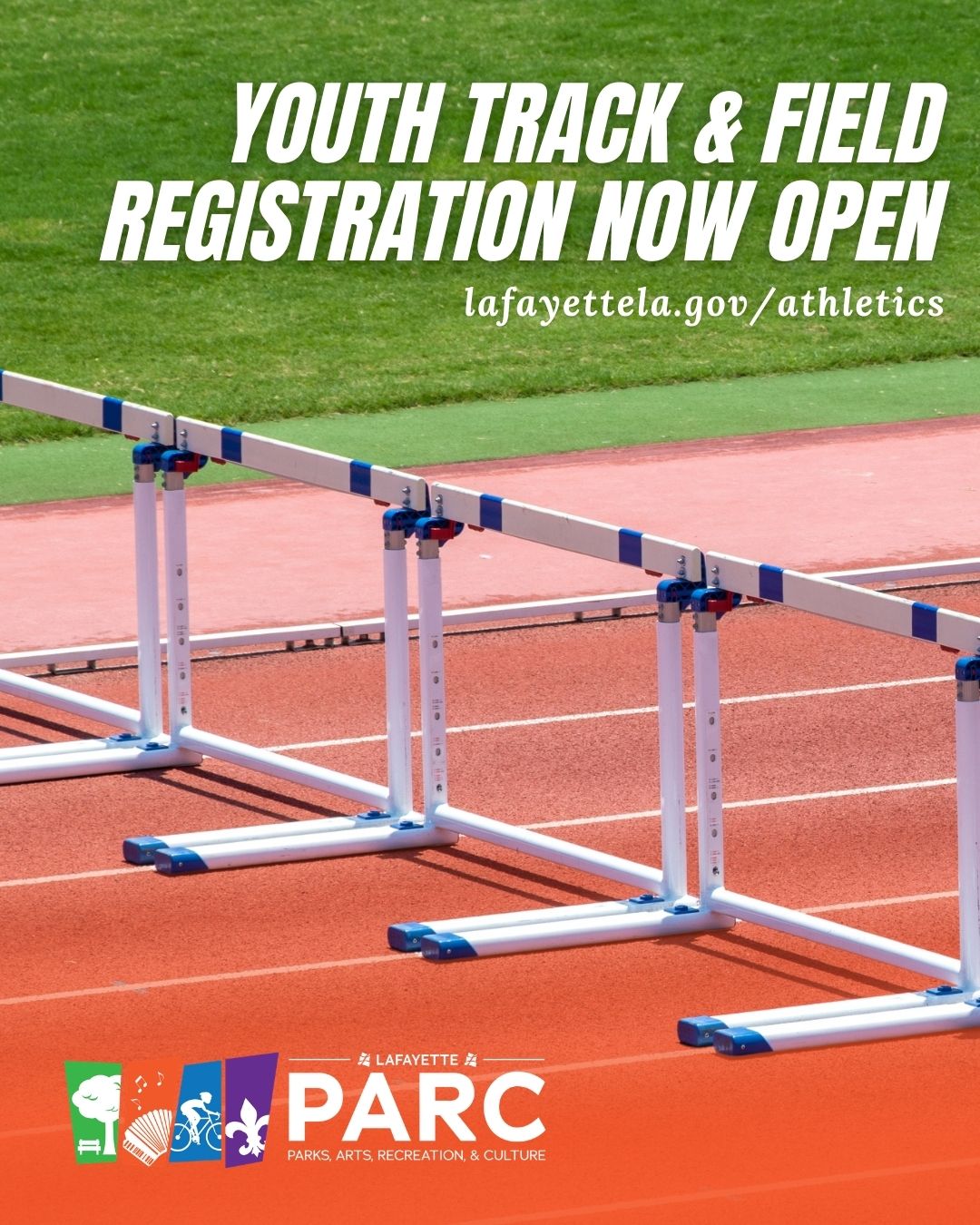 Lafayette, LA – Lafayette Consolidated Government’s Parks, Arts, Recreation, and Culture (PARC) Department is now accepting registrations for the 2026 Youth Track & Field season. Registration begins March 1 and will remain open throughout the season. You can view registration info here: https://bit.ly/4l8x5b9.