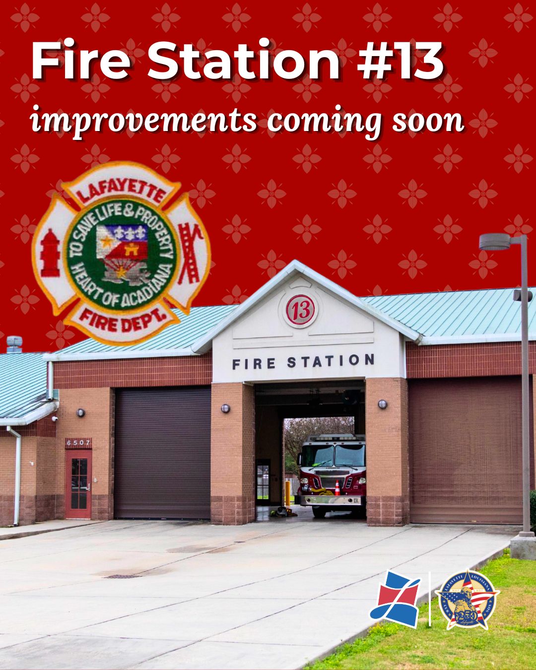 LAFAYETTE, LA – Fire Station #13, located at 6507 Johnston Street, will temporarily close beginning Friday, April 24, 2026, to undergo a comprehensive roof replacement and interior renovation project. Construction is expected to take approximately six months, with an estimated total investment of $582,000.